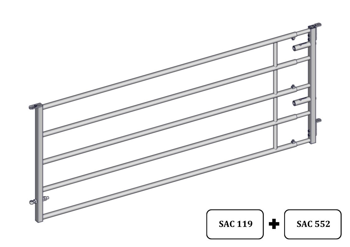 Cleda ""herbage"" extensible de 5 tubs. Fabricada amb tub de Ø 42 mm a la base i Ø 34 mm al frontal, la qual cosa permet ajustar a la mida necessària.’anclen a pilar o a paret amb 4 passadors. Els cargols giratoris permeten regular la inclinació de la cleda.