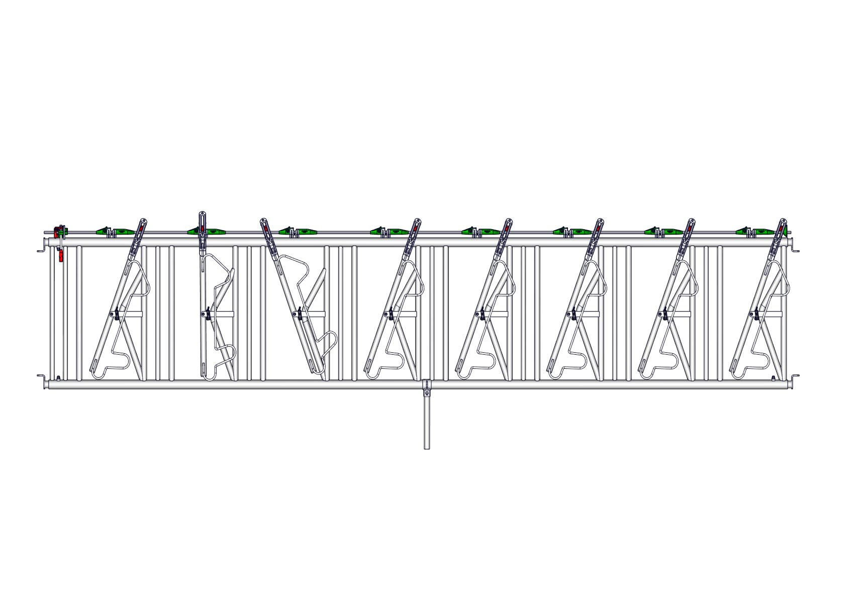 Cornadiza Safety 8 plazas/6 m fijo. El sistema Safety tiene 3 posiciones: plaza abierta, cerrada, y de seguridad en caso de que el animal caiga al suelo. Indicado para animales adultos