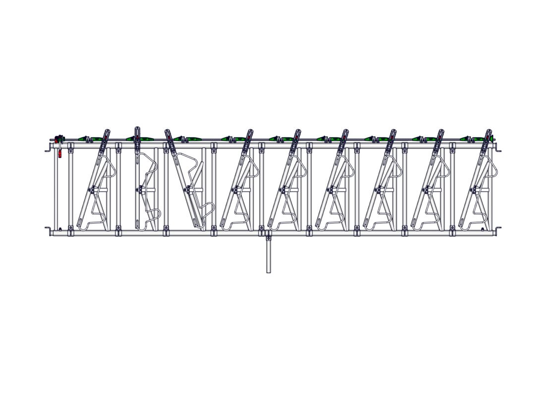 Cornadiza Safety 9 plazas/5 m regulable. Anchura de paso de cuello regulable con barra y abrazaderas.