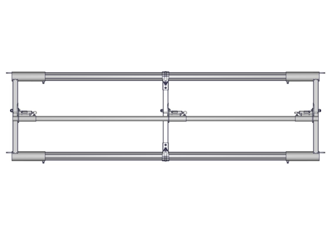 Frontal libre servicio de 2 tubos de Ø 102 mm. Disponible en 3, 4, 5 y 6 m. Barra central de 60 mm, regulable en posición alta o baja dependiendo del tamaño o edad del animal