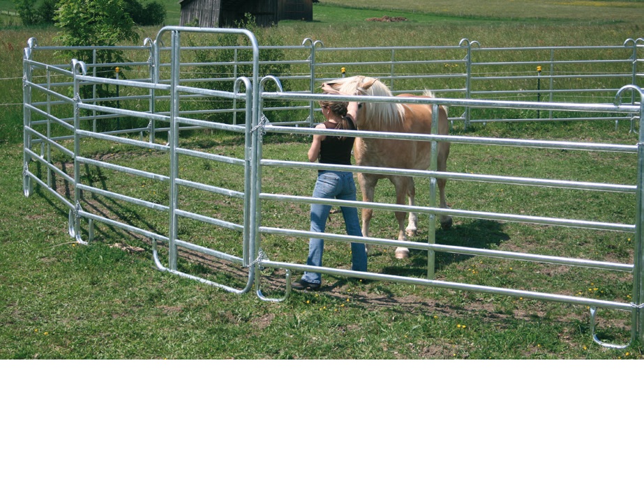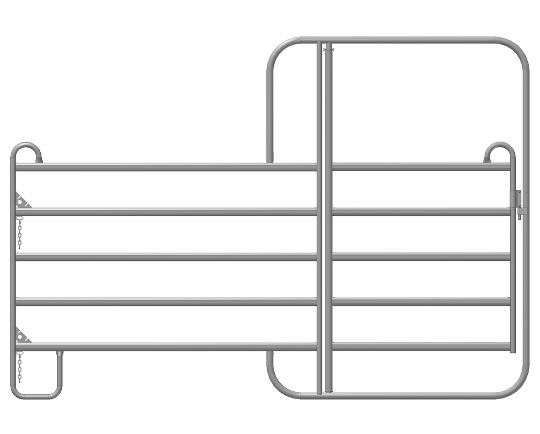 Panel de contención de 3 m con puerta de 1 m, fabricado con tubo ovalado de 50 x 30 mm y 1,5 mm de grosor, lo que le proporciona máxima estabilidad con un peso reducido. Galvanizado en caliente. Se utiliza para montar mangas de manejo, cerramientos móviles, corrales, etc.