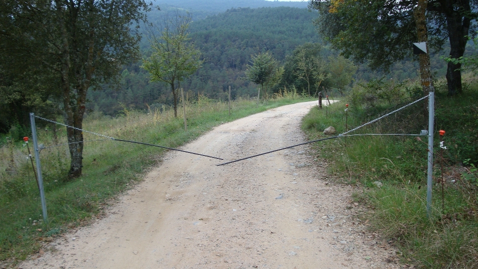 Paso de varillas con muelle. Permite el paso de vehículos a través del cercado eléctrico, y evita que el ganado pase a través, ya que identifica visualmente las varillas como hilo eléctrico.