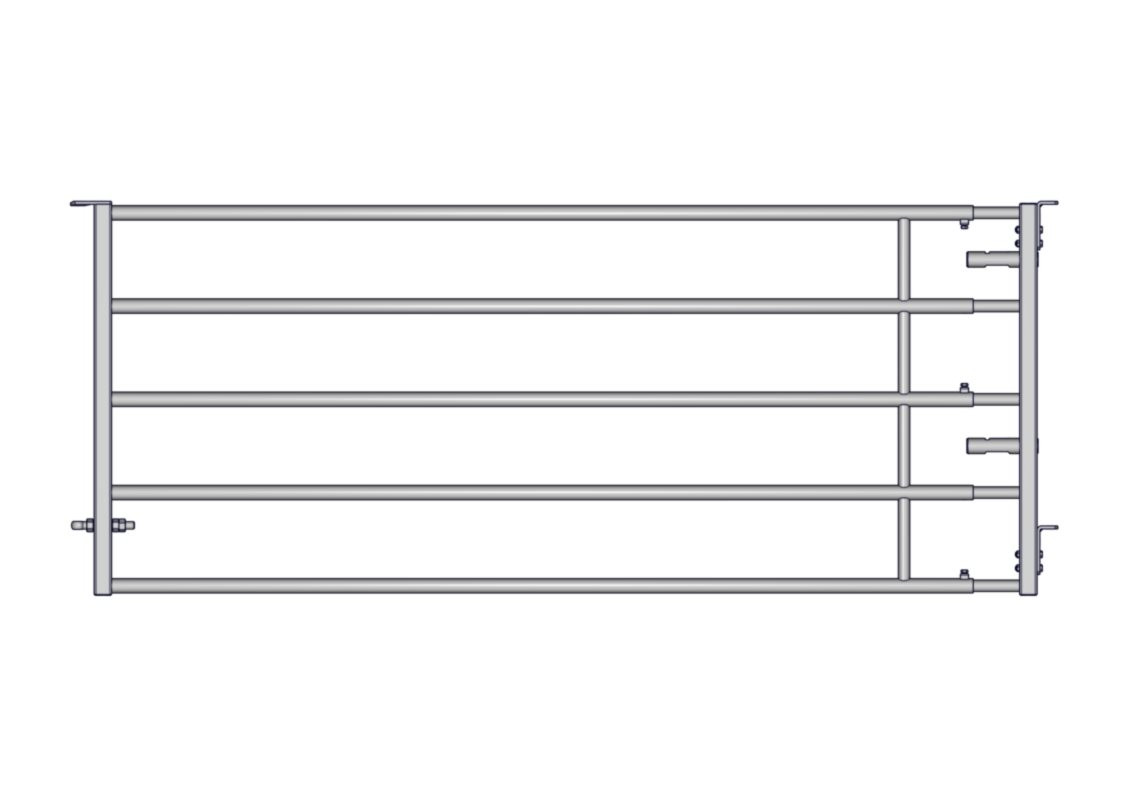 Puerta ""herbage"" extensible de 5 tubos. Fabricada con tubo de Ø 42 mm en la base y Ø 34 mm en el frontal, lo que permite ajustar al tamaño necesario. Se anclan a pilar o a pared con 4 pasadores. Los tornillos giratorios permiten regular la inclinación de la puerta.