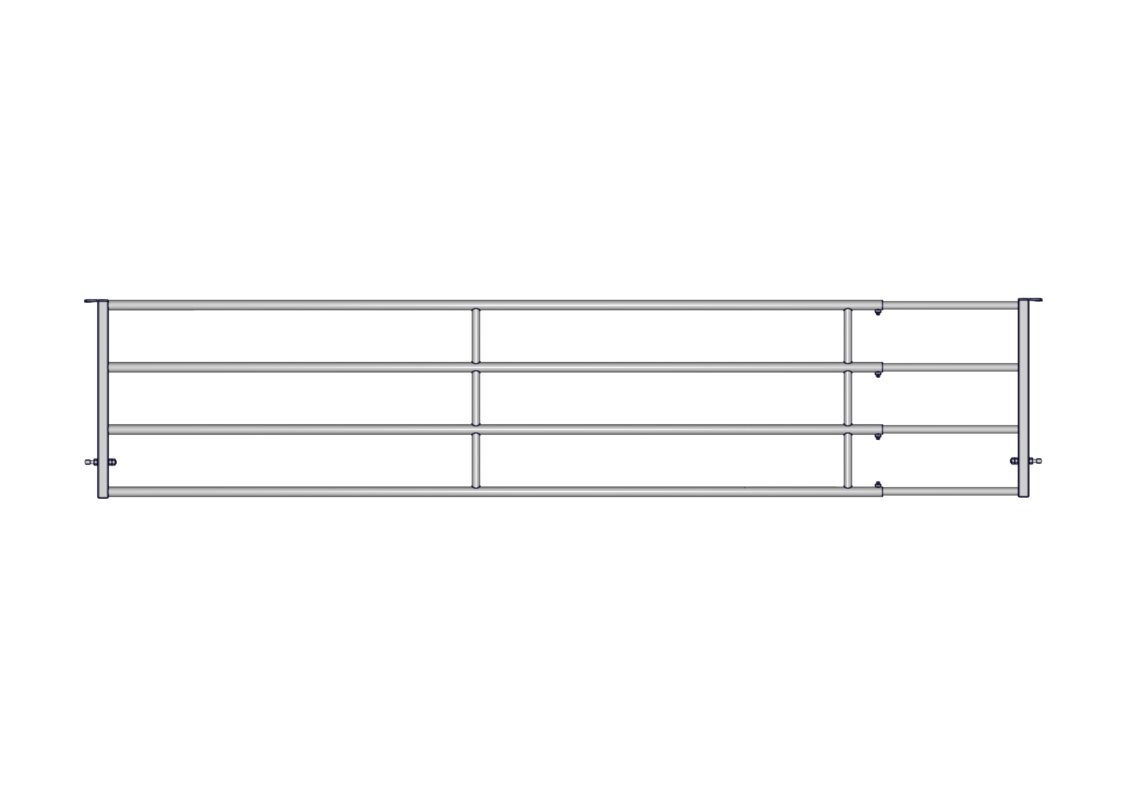 Puerta extensible de 4 tubos. Fabricada con tubo de Ø 60 mm en la base y Ø 49 mm en el frontal, lo que permite ajustar al tamaño necesario.